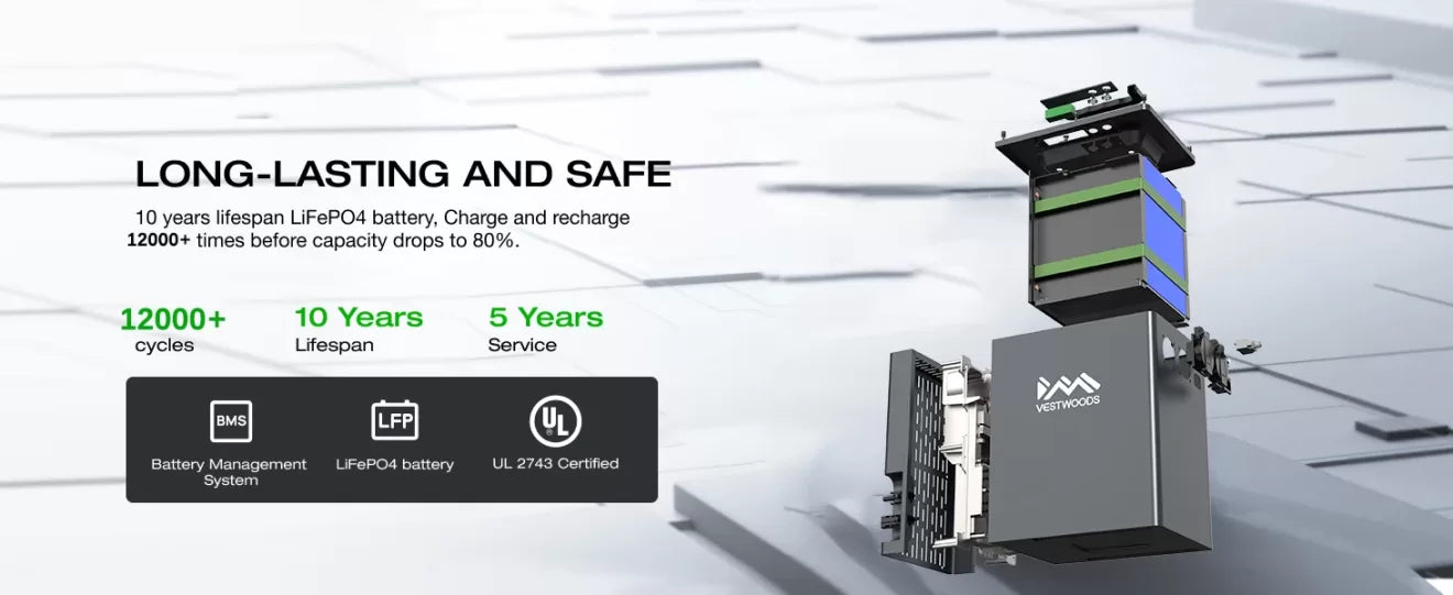 Built with premium LiFePO₄ cells that offer up to 4,000–5,000 charge cycles, ensuring many years of dependable service.