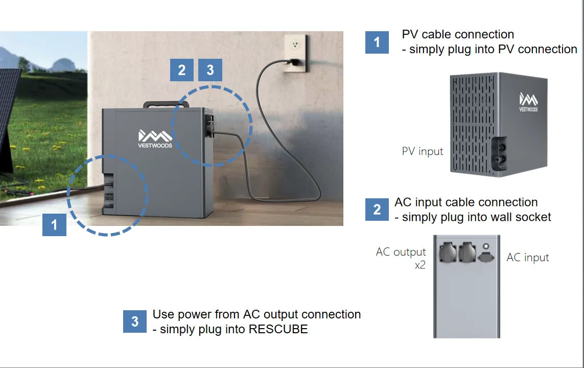 Supports both AC charging and solar DC charging, allowing for quick and flexible recharging.